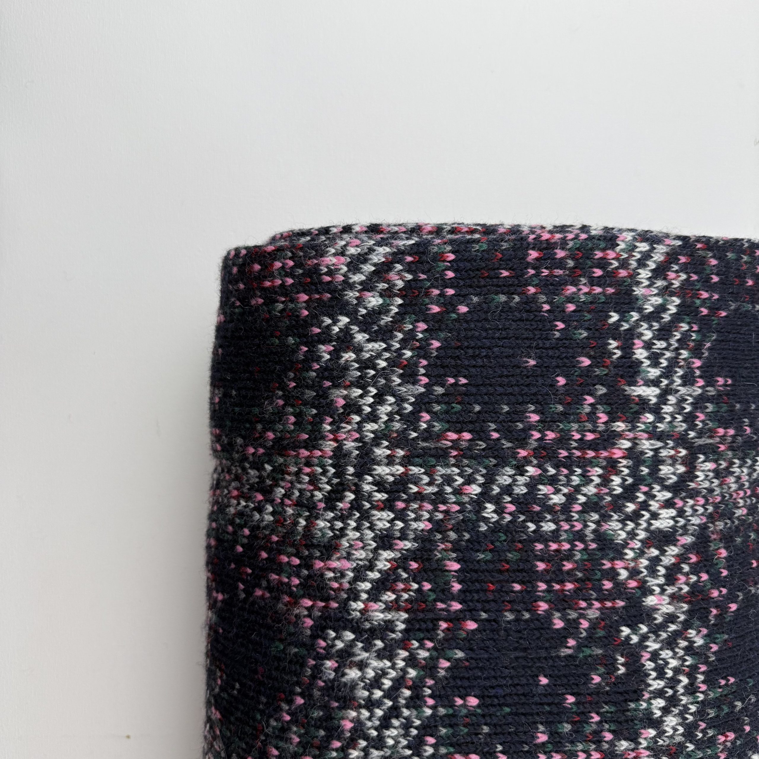Breisel Blauw Roze is een superleuk en vrolijk grof breisel in donkerblauw, met creme- en roze accenten. Bijna een pixelachtige ruit. Hoewel de roze accenten ons aan hartjes doen denken. Echt een lieverdje, dat heel geschikt is voor een leuke trui of lekker vest.